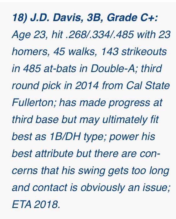Davis cracked the Houston Astros top 20 prospect list prior to the 2017 season, here is a scouting report provided by MinorLeagueBall.com in which he was labeled as one of the young players to watch.