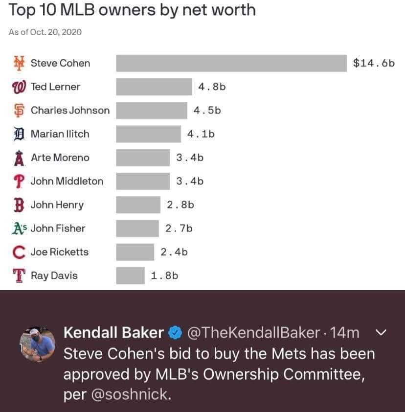With Steve Cohen becoming the next Mets owner, loads of fans expect the Mets to sign a lot of free agents. Fans think that he is going to set the market on fire. Today a graphic was shared with the richest owners, which to me, says something different.