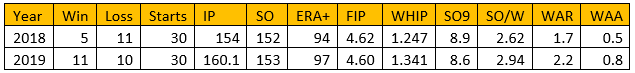 With the previous point in mind, have a look at his 2018 and 2019 stats. He started 30 games in both seasons, so his past injury issues were not a factor. Did he dominate? No. Was he an average major league pitcher? Pretty much. Do we want him in the middle of the rotation? Not at all. Are his numbers good enough to be an above average #5 guy? Absolutely. This is the realistic hope for Matz. He will reliably toss 5 decent innings every five days. Everyone wants him to dominate, but this is a realistic goal.