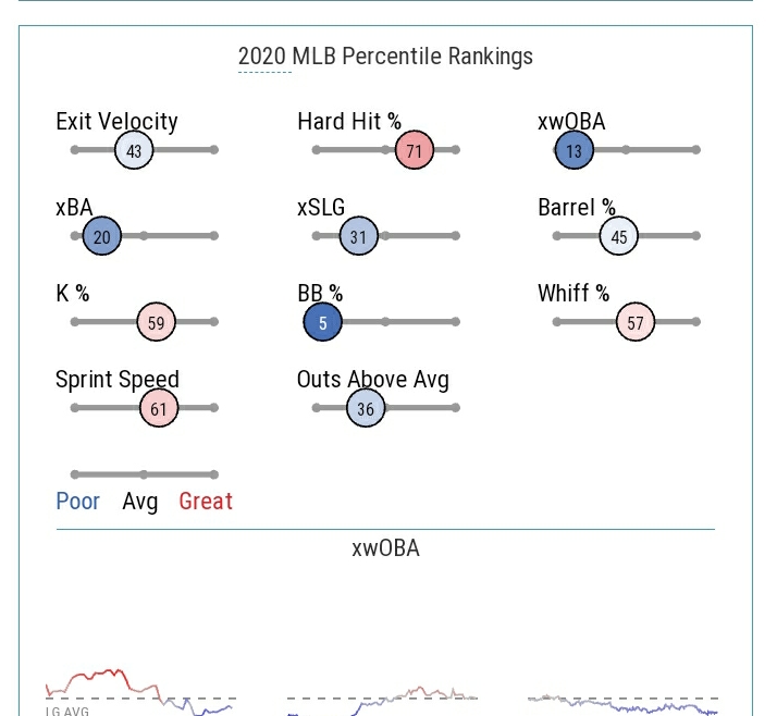 Main attraction for the 29 year old is his ability to move around the field. Over his career he has played every position besides catcher. In 2020 he played mostly second, but also all OF positions, 1B and 15 innings at short. In 2020 he was at 0 OAA at every position, but his best position is second were he had a plus 4 OAA in 2019. However, in 2018 he collected plus 4 in CF according to OAA.