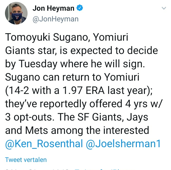 The Yomiuri Giants have offered Sugano a 4 year contract with 3 opt-out to let him try to sign with a MLB Club in the coming years. Ken Rosenthal also reported numerous offers from a MLB Squad which provides more money for the righty.