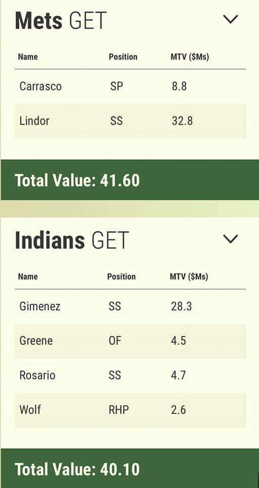 Unless you’re a CLE fan, everyone is a fan of this deal. Last month I wrote an trade target article about why the Mets should target Carlos Carrasco. In Lindor, the Mets have added a top 10 caliber MLB player that provides power and speed at a premium position. In short, Lindor is a 5-tool player that can be an impactful part of this Mets club’s line-up from both sides of the plate.