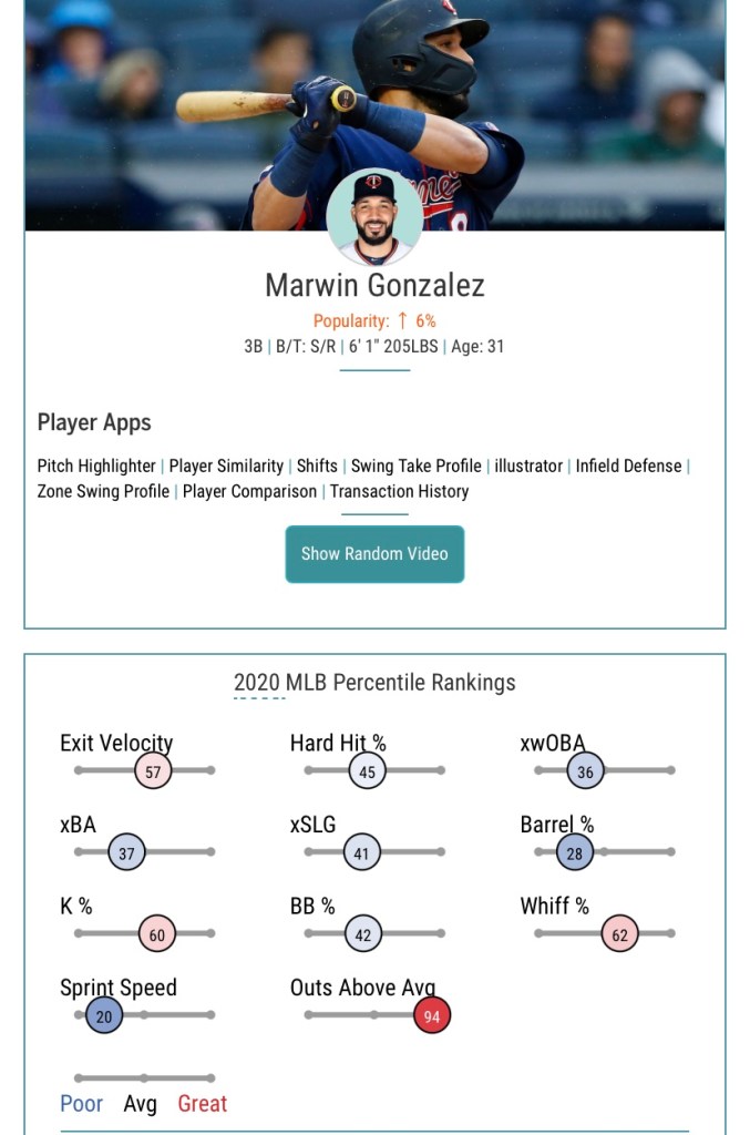Now let’s take a look at Boston Red Sox’ Marwin Gonzalez’ metrics.