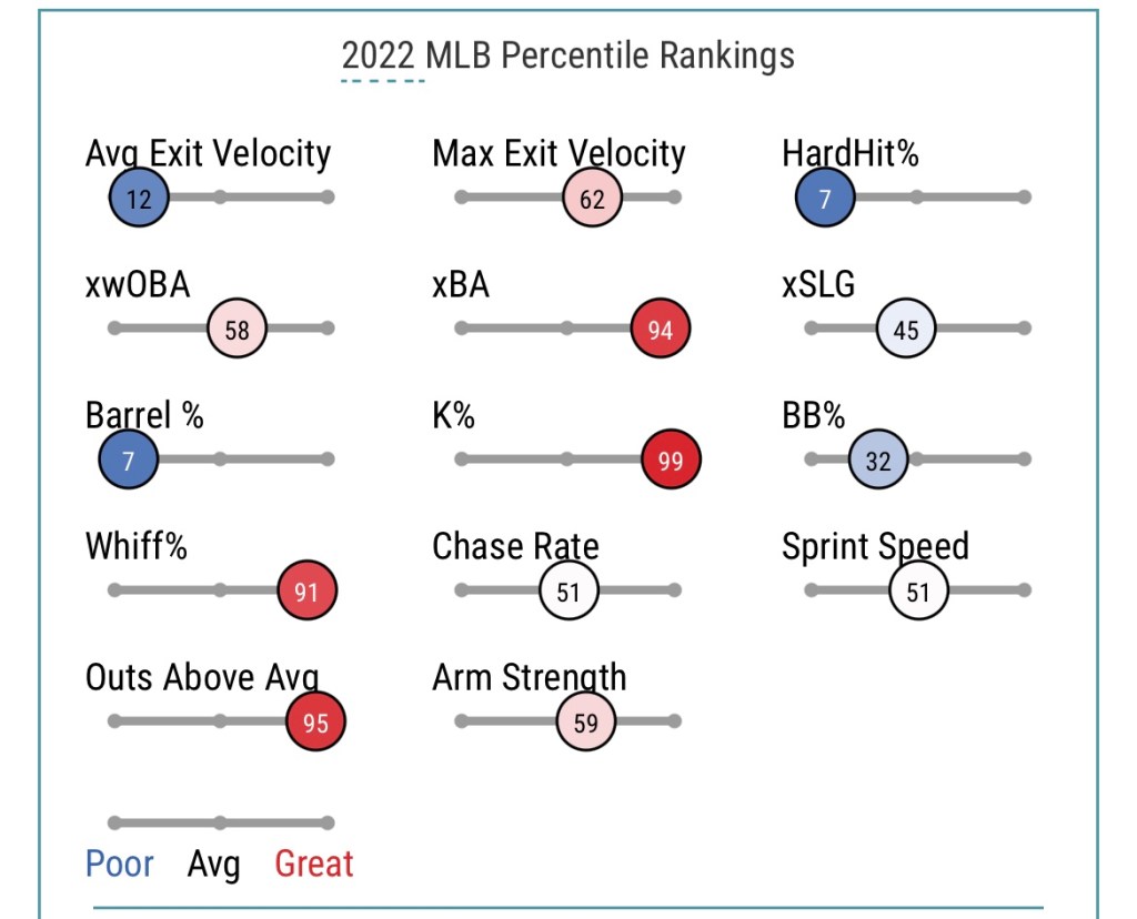 It looks like the reason why some of the other publications have McNeil hitting under .300 going forward is due to the second baseman’s relatively low Avg Exit Velocity as well as his HardHit%.